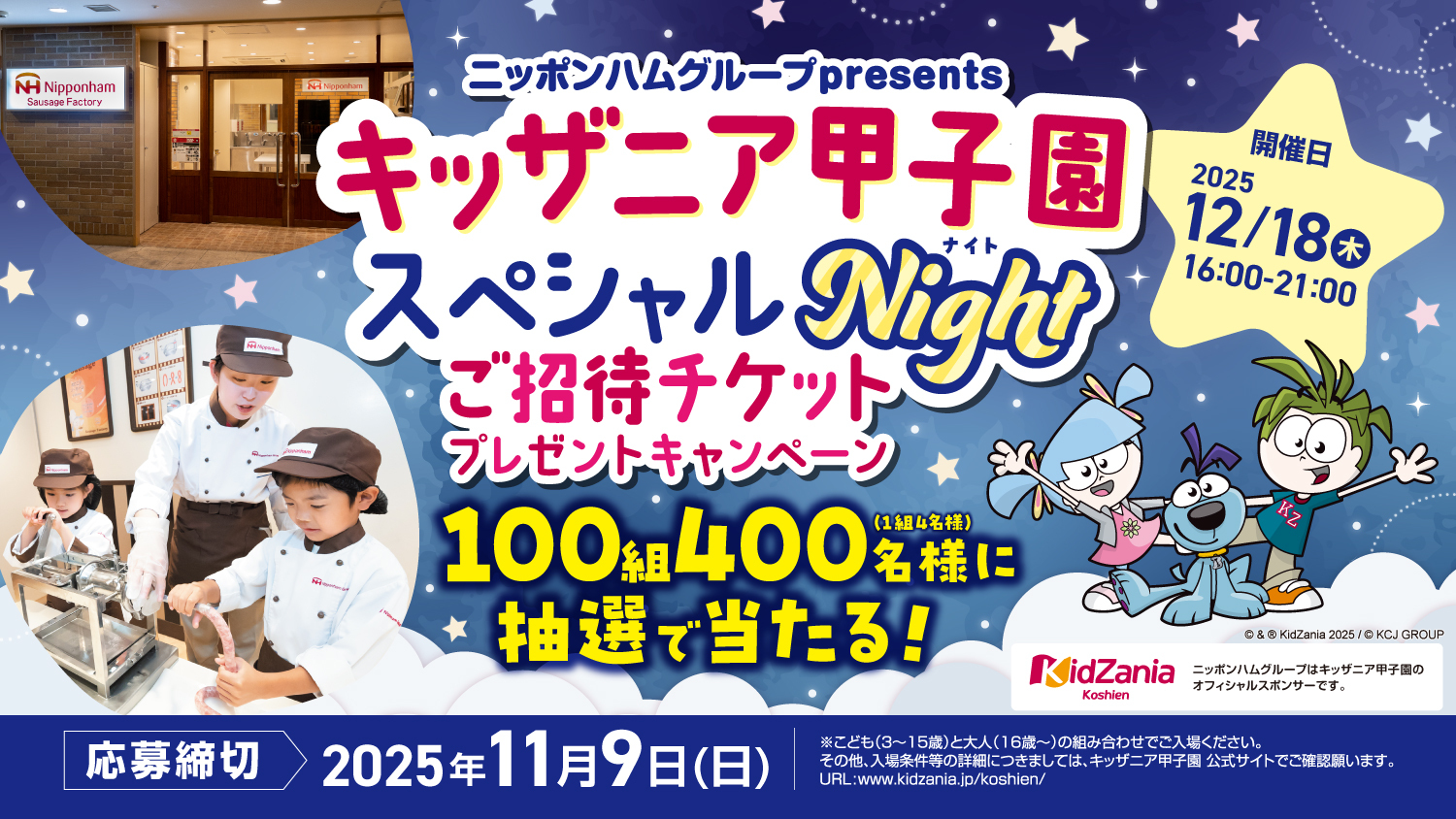「2025年12月18日(木)ニッポンハムグループpresents キッザニア甲子園スペシャルNightご招待チケット」 100組400名様