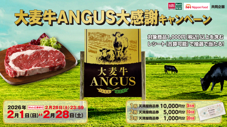 株式会社天満屋ストアにて大麦牛ANGUS及び大麦牛ANGUS使用加工品を1000円以上ご購入いただいた方