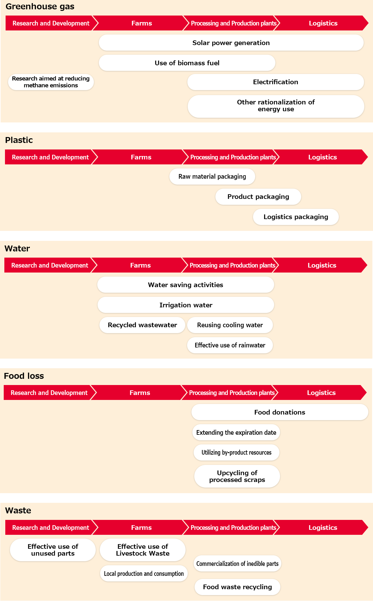 重点項目ごとの生産プロセスにおける取り組み