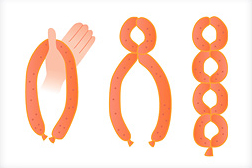 - 長いウインナーの真ん中をクルクルとねじって半分にします。