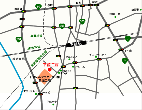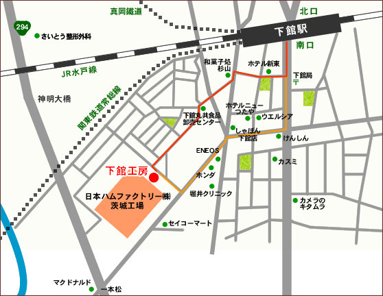 - JR水戸線・関東鉄道常総線 下館駅南口下車 徒歩15分