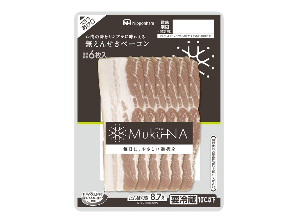 お肉の味をシンプルに味わえる無えんせきベーコンです。
