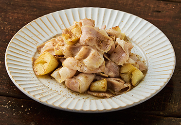半分に切ったアッタラ うま塩バラ切り落としと1のニラ、もやし、【B】の調味料を加え、さっと強火で炒める。