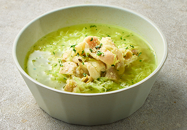 耐熱皿にキャベツと【A】を入れてラップをかけ、電子レンジ(500W)で3分加熱する。取り出してよく混ぜる。
