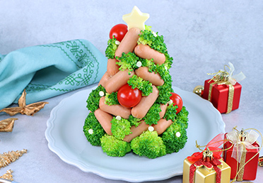 お好みのクラッカーに4をのせ、ウイニーを真ん中に入れて、かたちを調え出来上がりです。