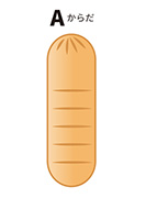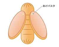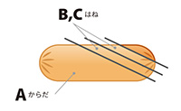 A(からだ)にB・C(はね)をあげパスタでとめます。