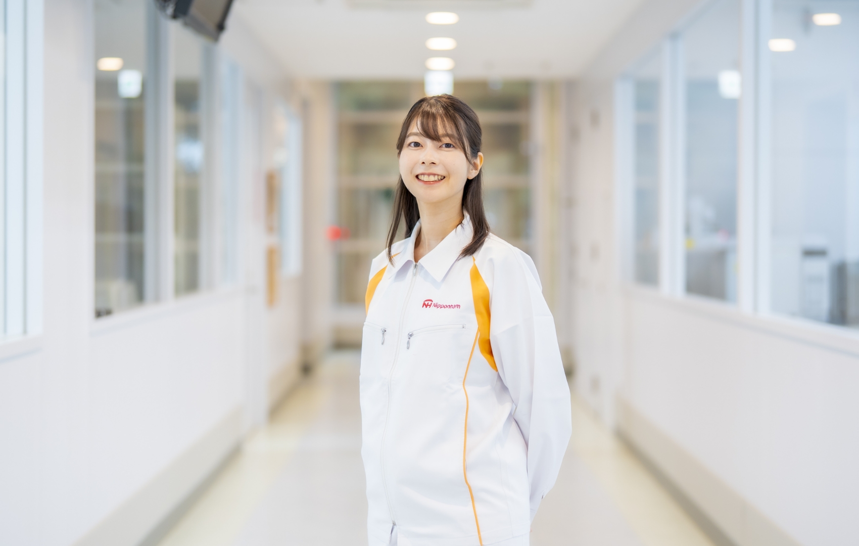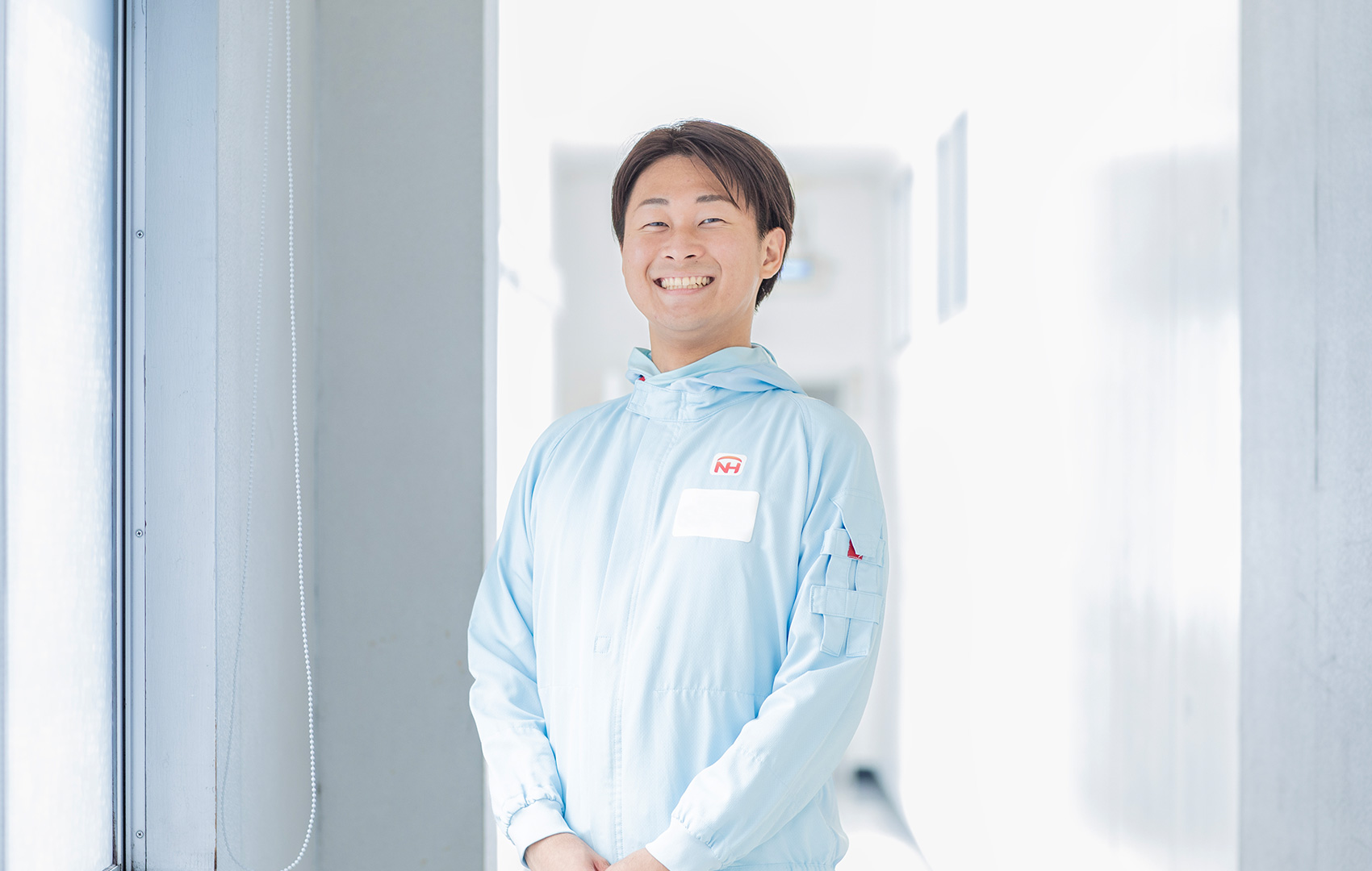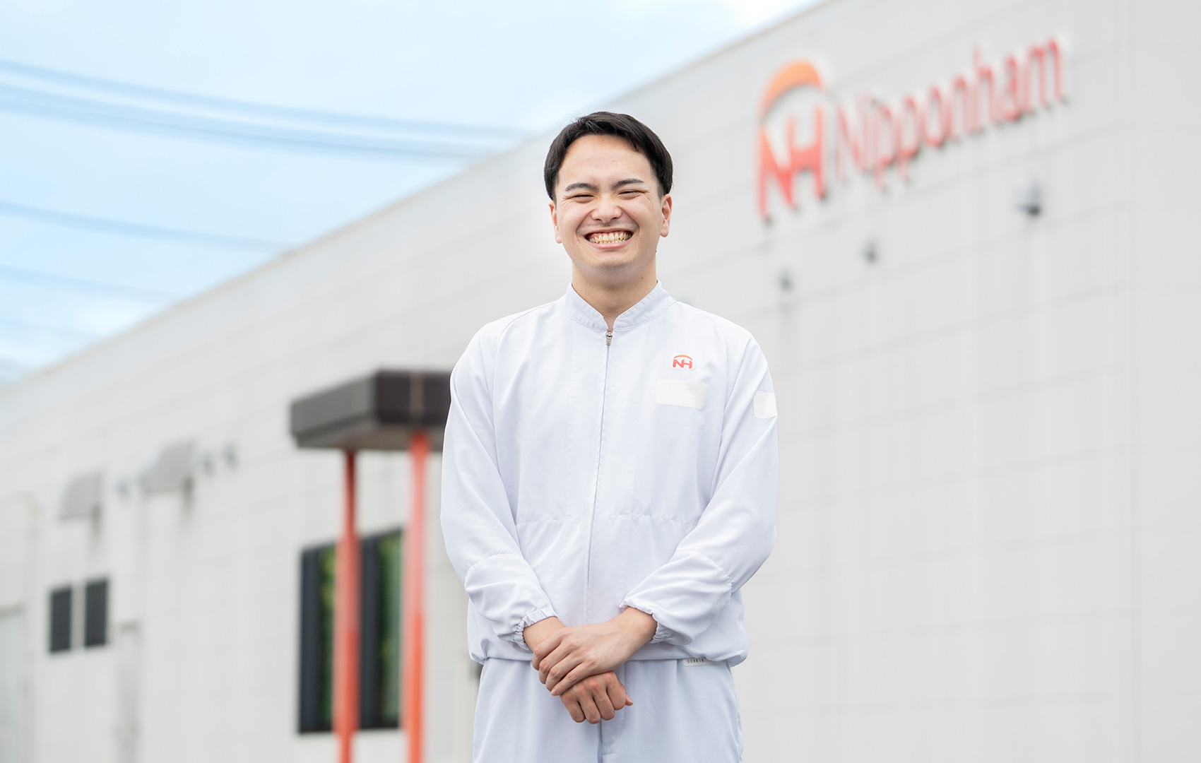 日本ハムの加工食品の製造を担当。安全かつ高品質、安定的に生産をミッションとし、品質管理や設備、工程改善なども担います。