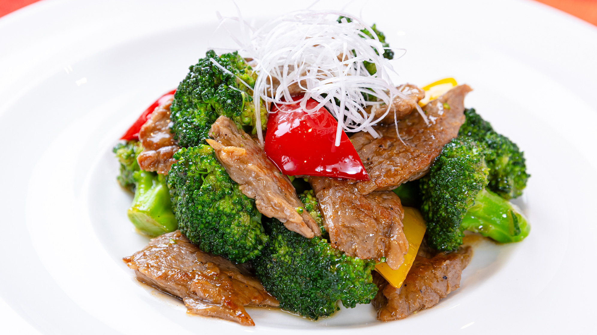 FiTeiNとブロッコリーの中華風炒め。牛肉の代替として料理に使用できる食品としてまずは展開する。焼く、炒める、煮る、揚げるなどさまざまな調理が可能。
