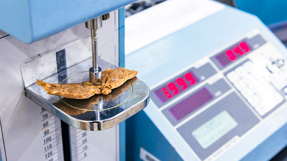 それまでには、弾力性の測定や、本物の牛もも肉やハラミなどと食べ比べながら硬さや繊維感、ほぐれやすさなどを見る官能検査を積み重ね、「牛肉らしさ」を追求した。そこまで辿り着くまでには3年半の歳月が流れていた。