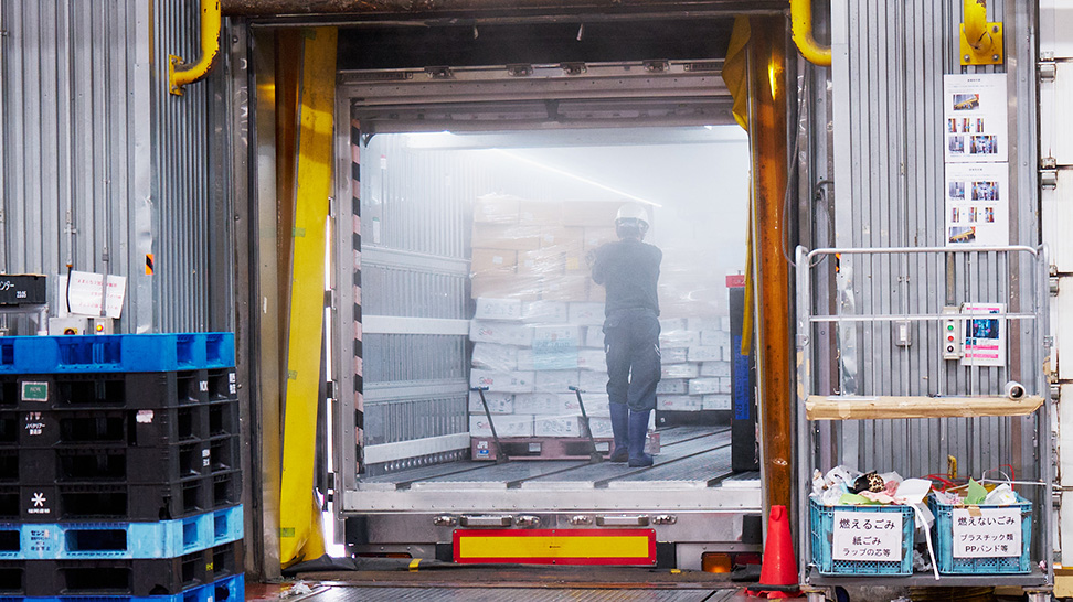 そして、それら食肉商品を輸送するのが、同じくニッポンハムグループ企業である「日本チルド物流」です。同社は全国7つの事業所を中心として、国内の生産、処理・加工の現場や日本物流センターの倉庫から、全国120か所に営業拠点のある日本フードグループ(東日本フード、関東日本フード、中日本フード、西日本フード)等の事業所や顧客への直送を担い、安全・安心な食肉商品を全国の食卓までお届けする重要な業務の一端を担っています。